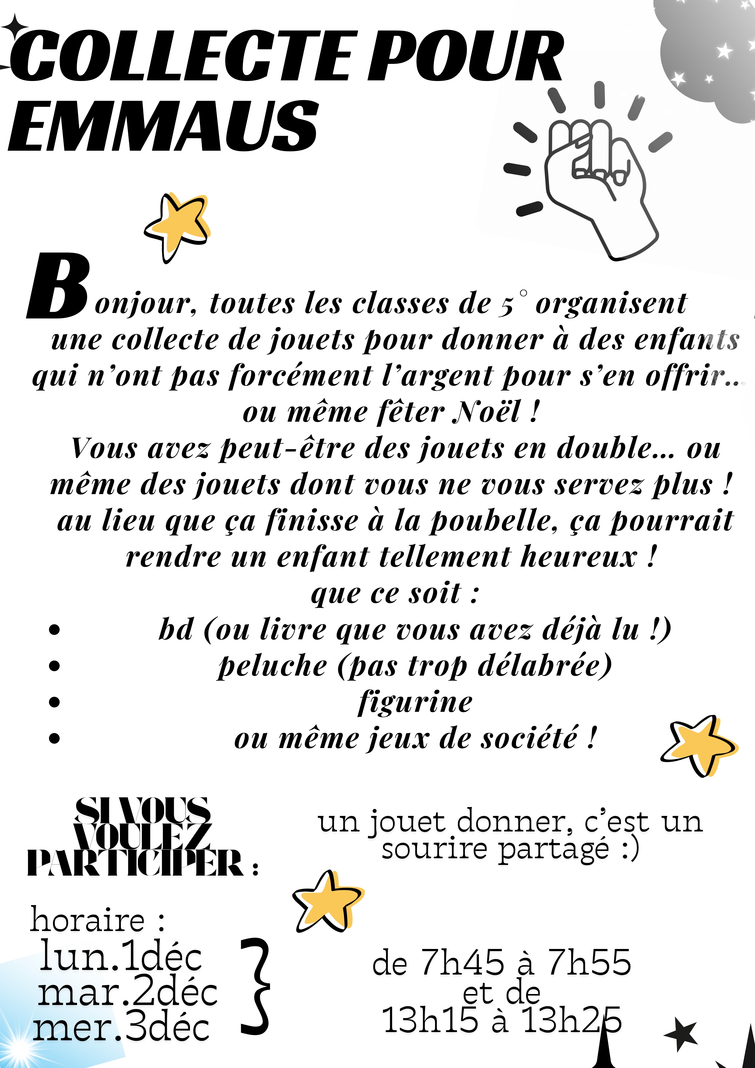 Collecte pour Emmaüs - organisée par les classes de 5e