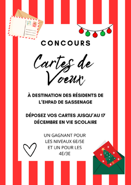 Le CVC (Conseil de la Vie Collégienne) organise tout au long du mois de décembre un grand concours de cartes de vœux, ouvert à tous les élèves du collège.